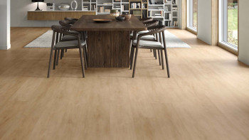 Create a cosy living atmosphere with style or enhance your commercial premises. Vinyl plank flooring impressively enhances rooms such as living rooms, hallways or sleeping areas and, if you choose the solid vinyl version, is the right choice for damp rooms.