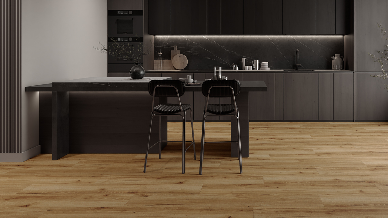 The floor also impresses in demanding areas: it is waterproof and antibacterial, making it ideal for kitchens, hallways and dining areas. The WPC flooring is also suitable for hot water and electric underfloor heating - for cosy warmth with modern living comfort.
