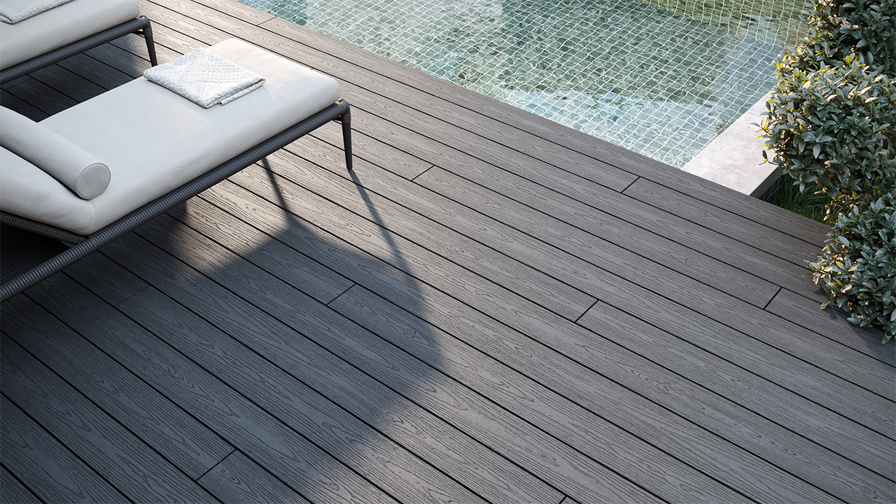 The planeo Coex BPC decking boards are made from a particularly robust material mix (bamboo plastic composite) and do not allow water to penetrate. They are extremely dimensionally stable and very weather-resistant. The planeo Sicurezza BPC decking board with its elegant wide look offers two structures (wood and fine structure) combined in one board.