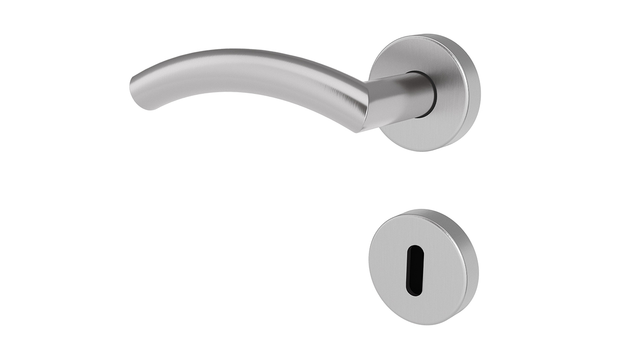 Die Drückergarnitur ist mit runden Klipprosetten ausgestattet.