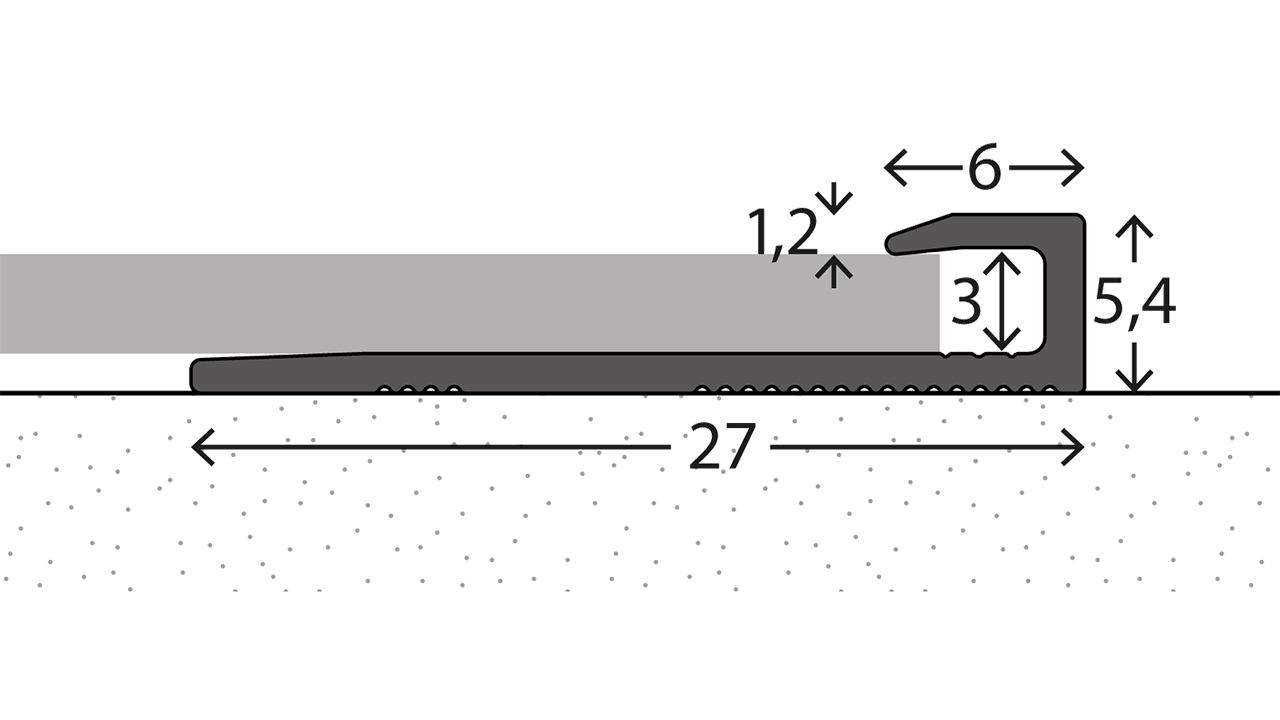 The 112 end profile is a slide-in profile (universal end profile) made of aluminium. It is suitable as a door stop profile and is designed for covering thicknesses of 2.5-3 mm - ideal for thin designer coverings and textile floor coverings, for example.