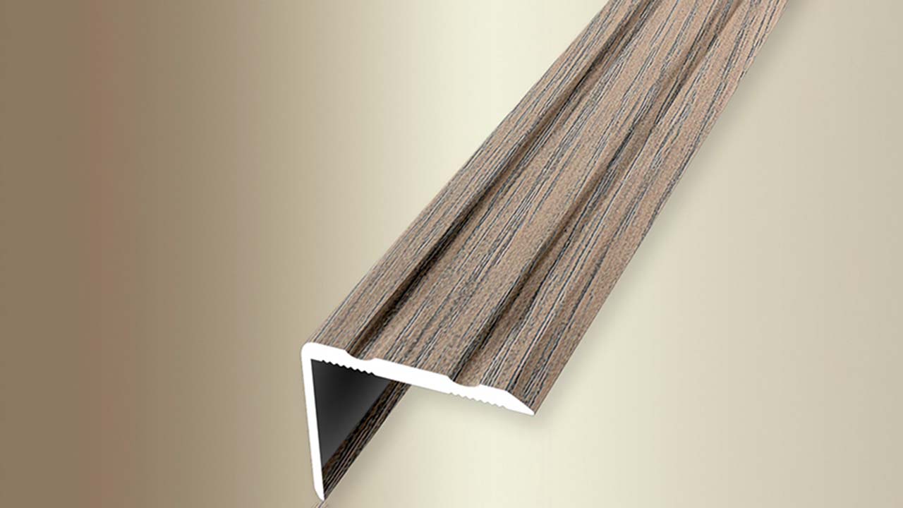 • Winkelprofil in Holzoptik mit Zierrillen.