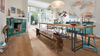 • Authentic wood optics with EIR structure, bevels, and varied plank formats