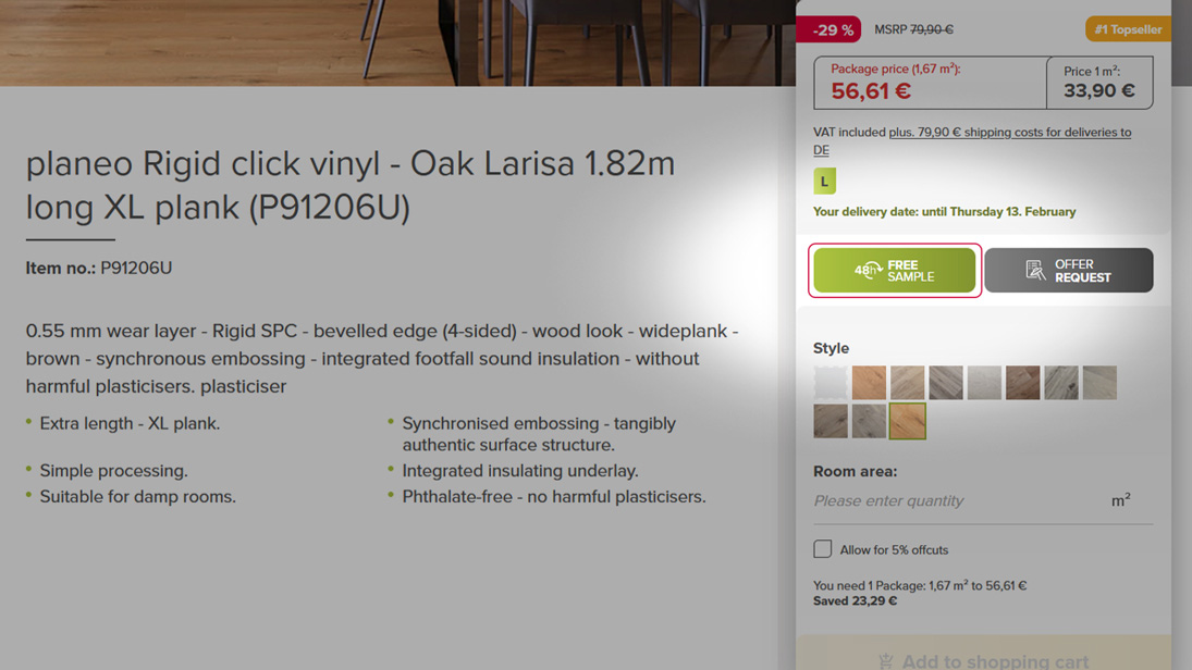 - For many products, we can send you the samples within 48 hours. These are marked accordingly.