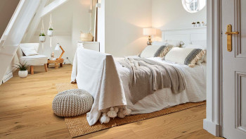 Surfaces are finished in different ways. Some are left natural and are only oiled to seal the surface. Others are brushed and lacquered. With a lacquer finish, certain new colour nuances can be introduced. Ship's floor parquet is also available in a UV-oiled version. With this surface sealing, the parquet floorboards are first oiled and then hardened by means of UV radiation. The advantage of this process is that the surface is already completely dry and so the new parquet floor can be used immediately after installation.
