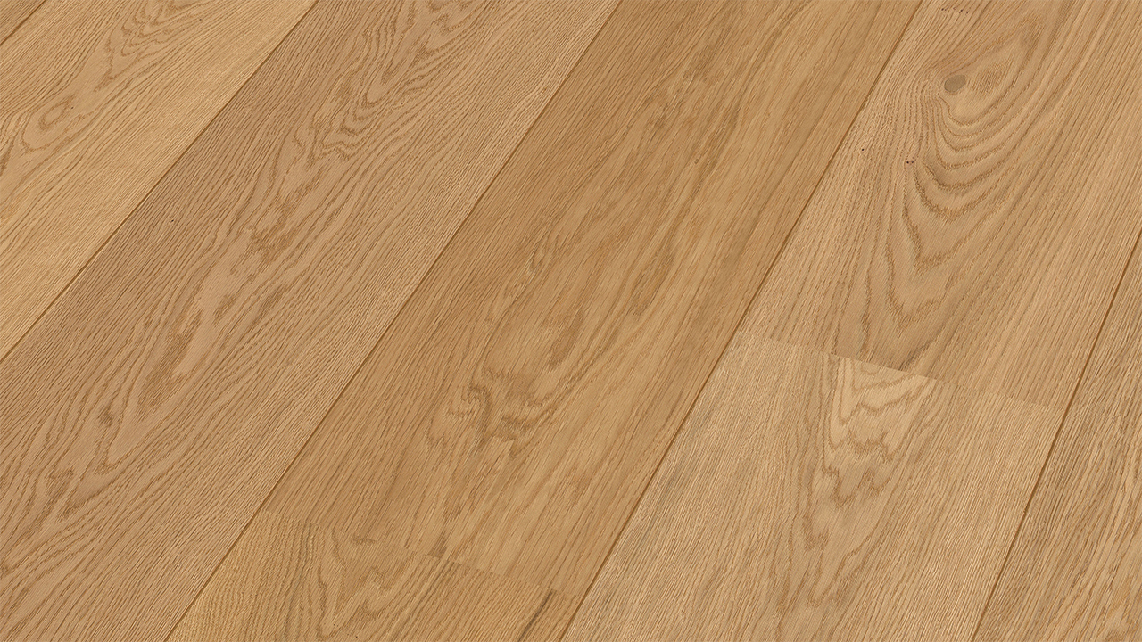 Der Lindura-Holzboden HD 400 verbindet die natürliche Schönheit von Echtholz mit einem besonders widerstandsfähigen Produktaufbau. Die großzügige Schlossdiele bringt Holzflächen vor allem in offenen und repräsentativen Räumen eindrucksvoll zur Geltung.