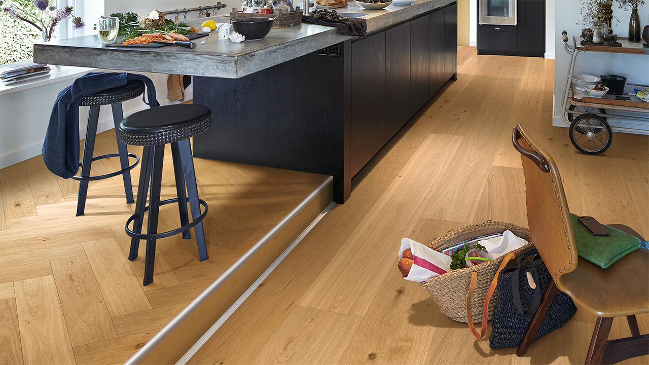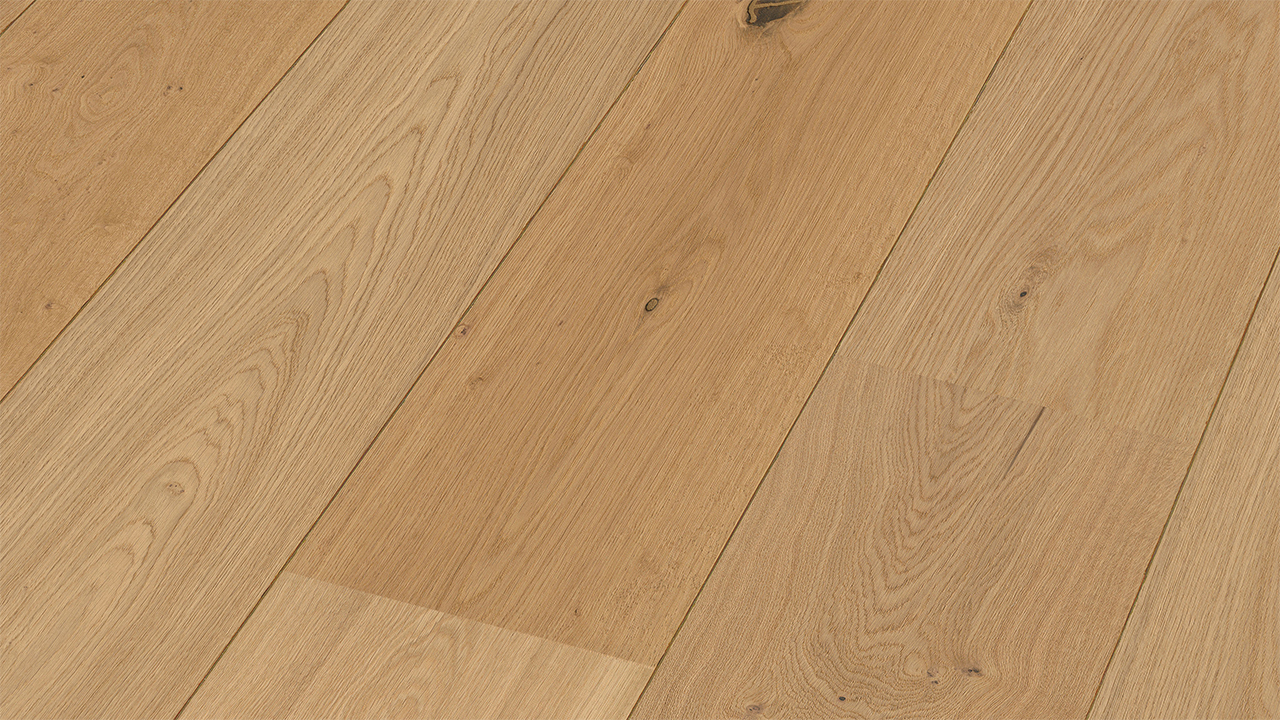 Der Lindura-Holzboden HD 400 verbindet die natürliche Schönheit von Echtholz mit einem besonders widerstandsfähigen Produktaufbau. Die großzügige Schlossdiele bringt Holzflächen vor allem in offenen und repräsentativen Räumen eindrucksvoll zur Geltung.