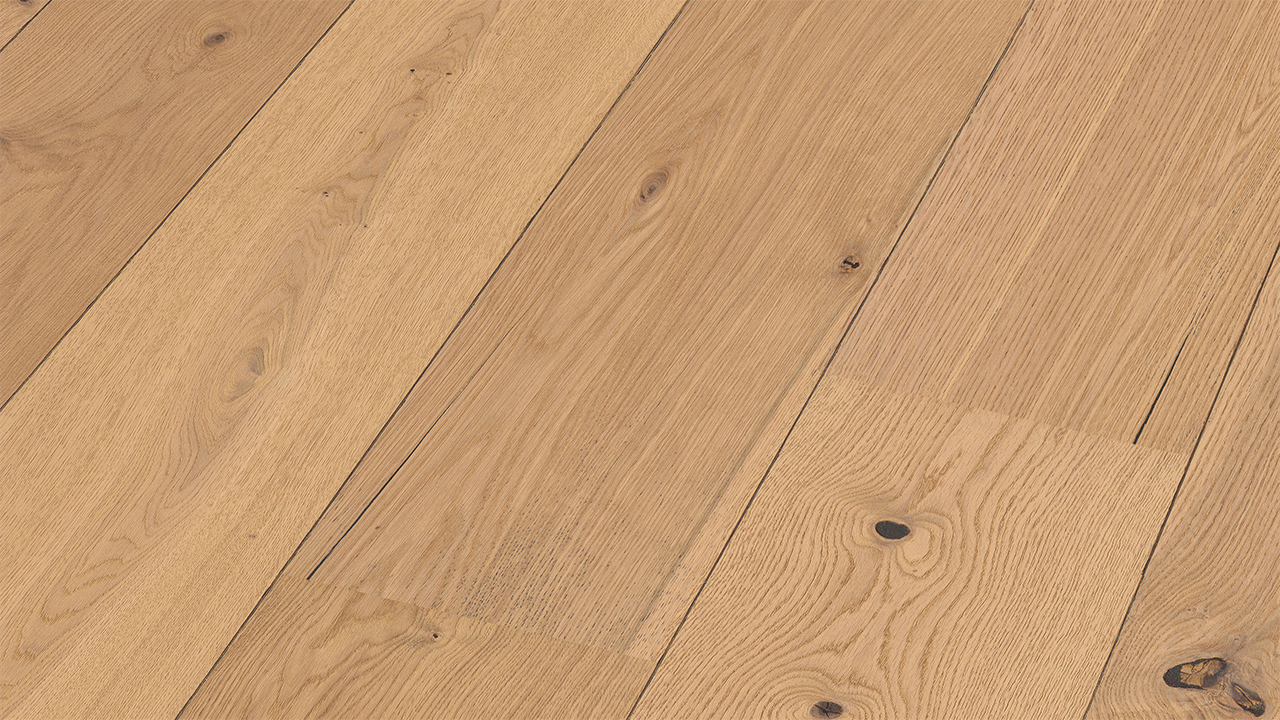 Der Lindura-Holzboden HD 400 verbindet die natürliche Schönheit von Echtholz mit einem besonders widerstandsfähigen Produktaufbau. Die großzügige Schlossdiele bringt Holzflächen vor allem in offenen und repräsentativen Räumen eindrucksvoll zur Geltung.