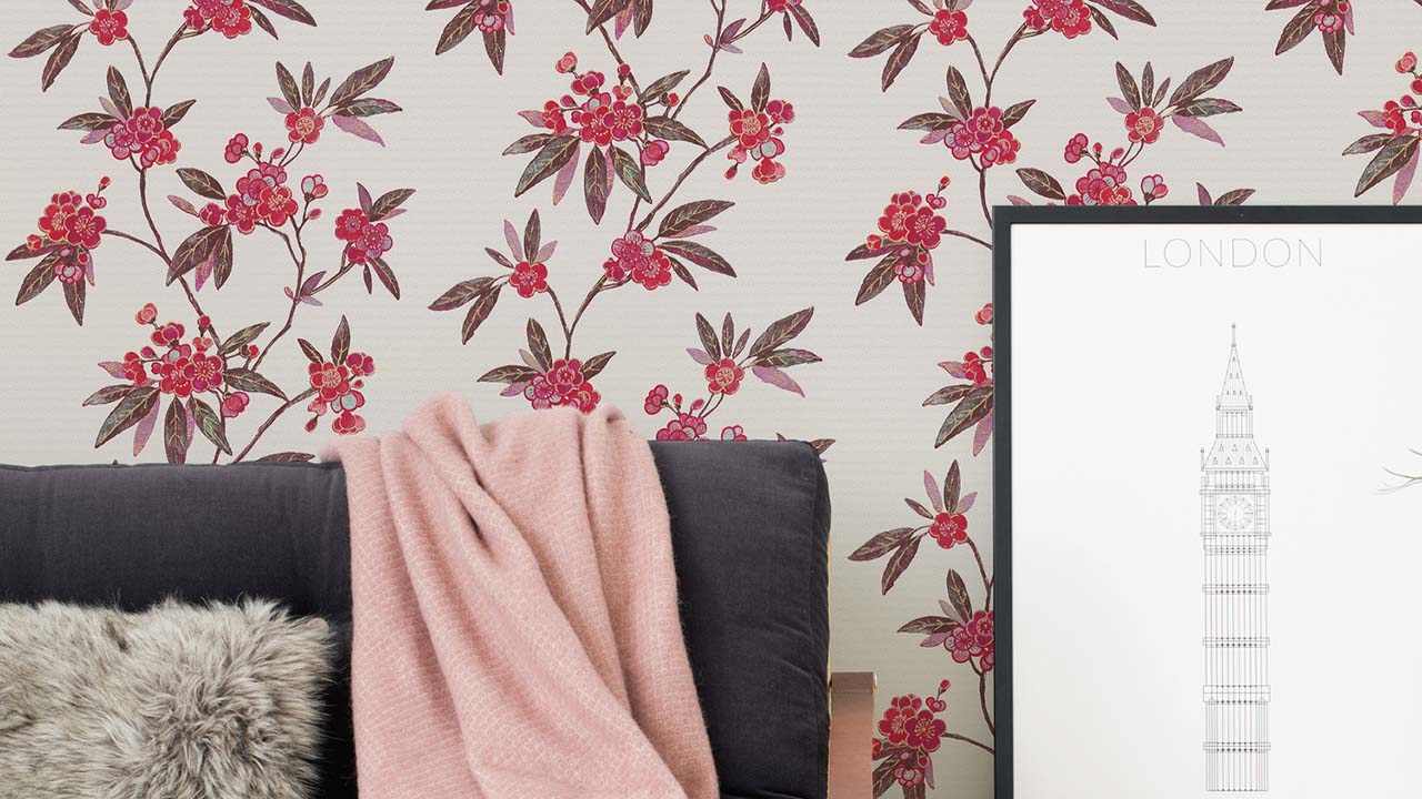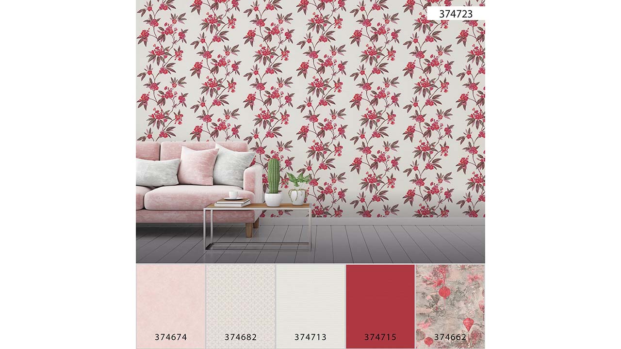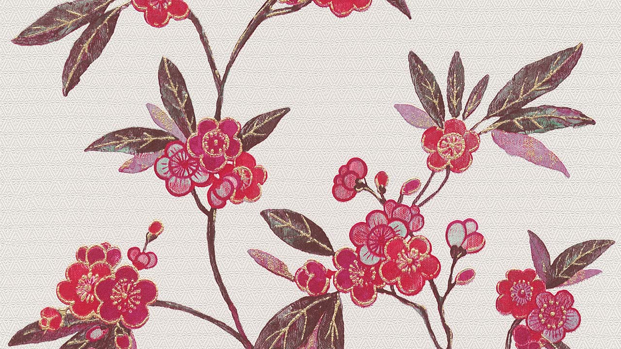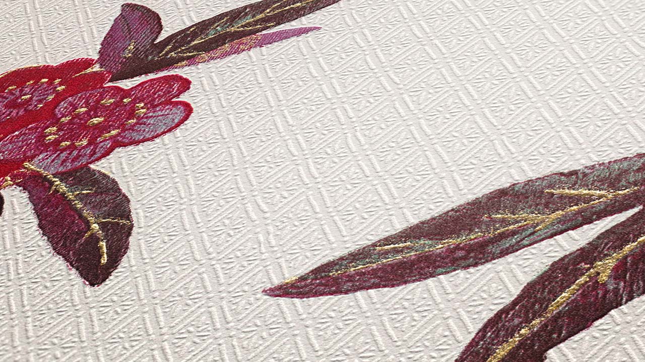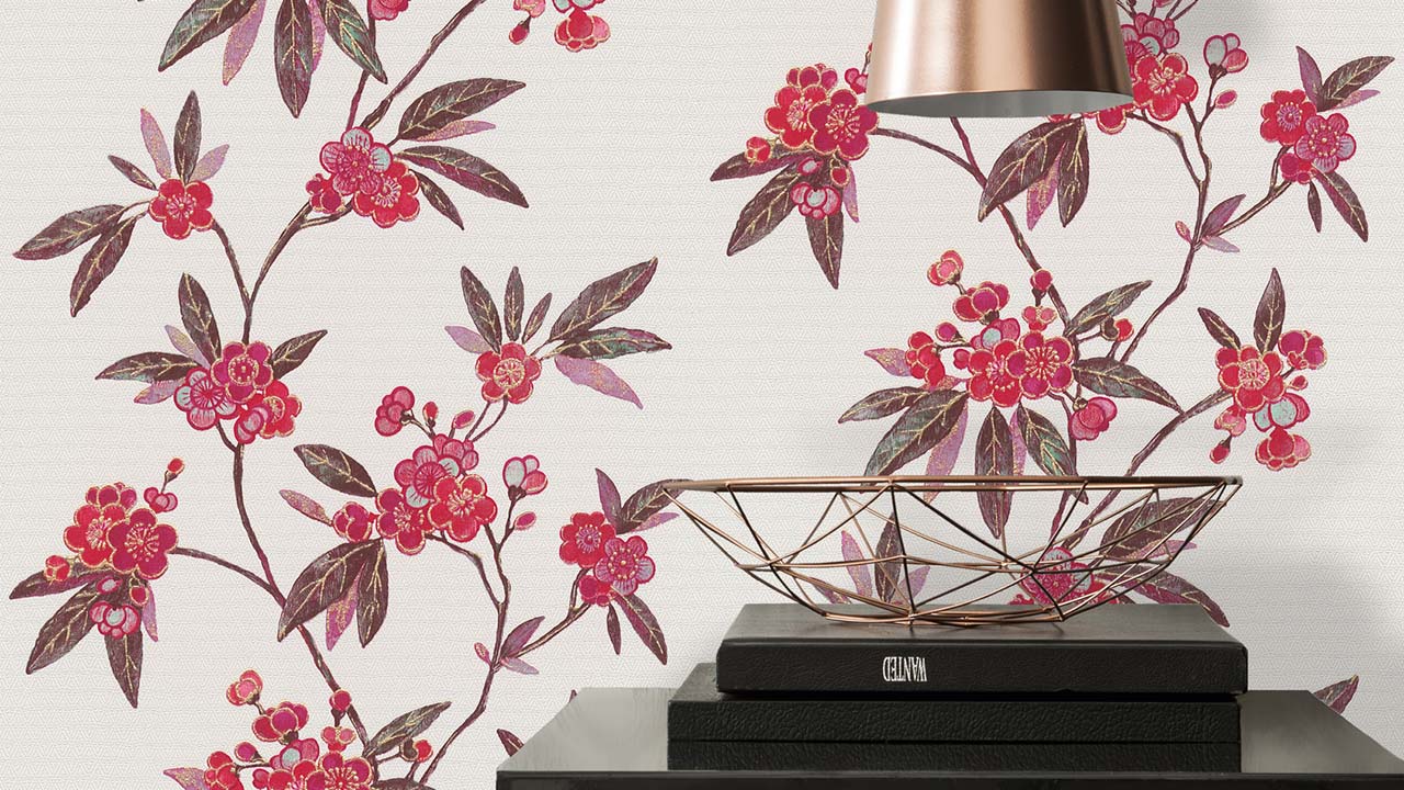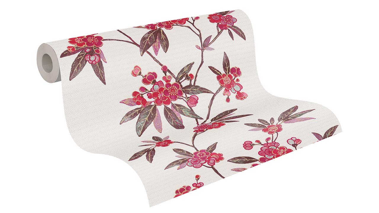 vinyl wallpaper red modern retro flowers & nature Asian Fusion 723